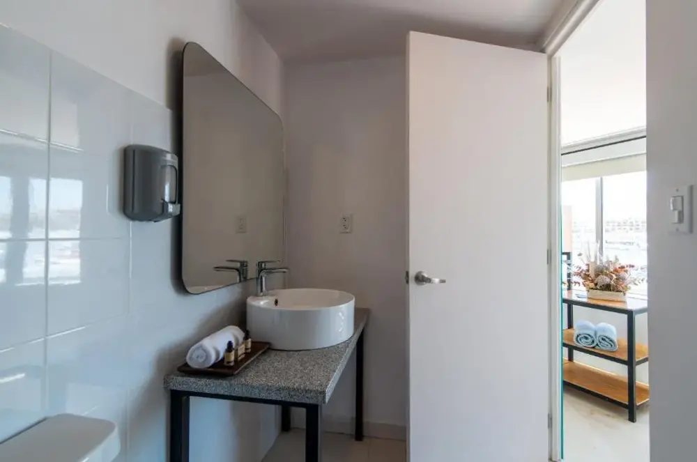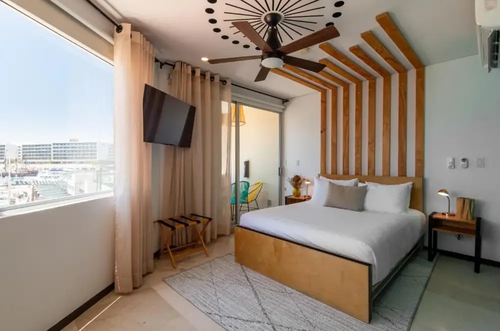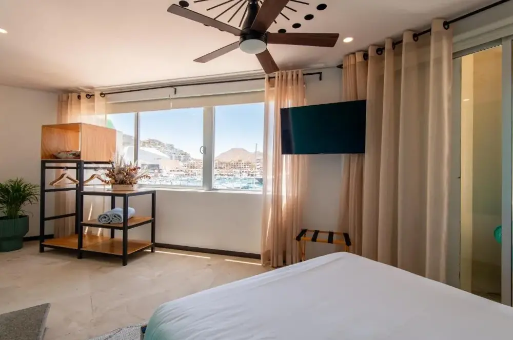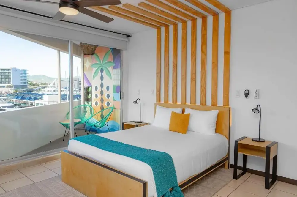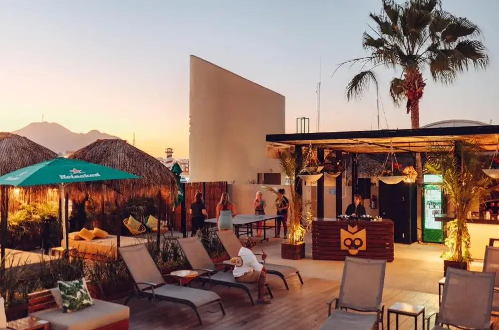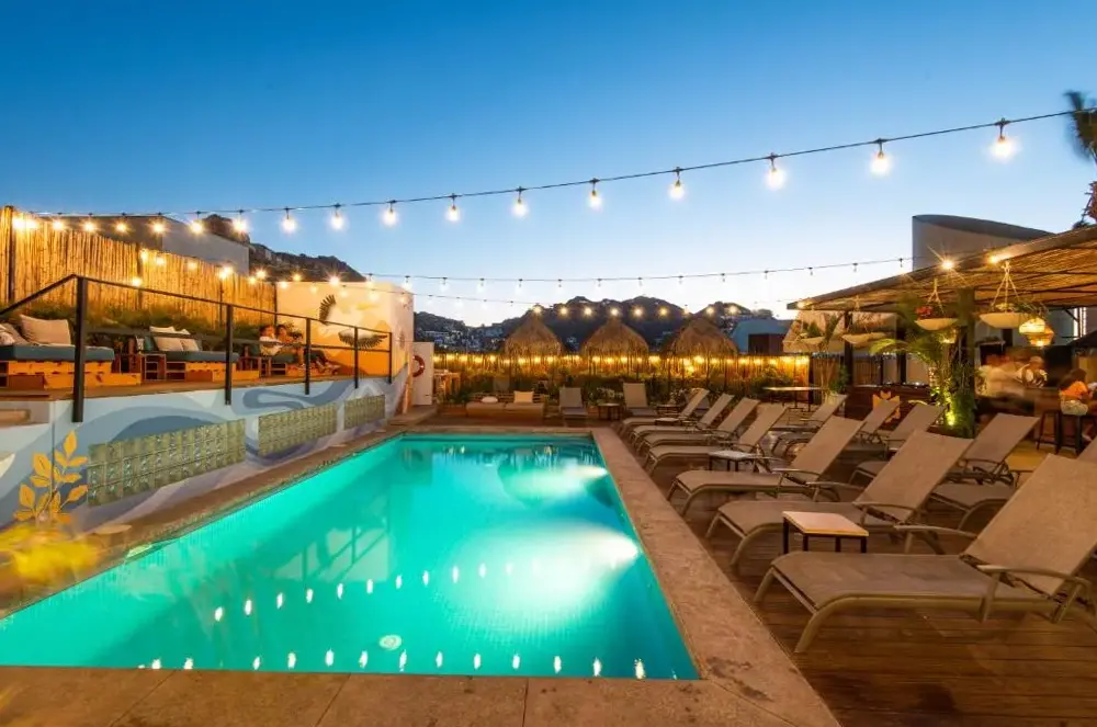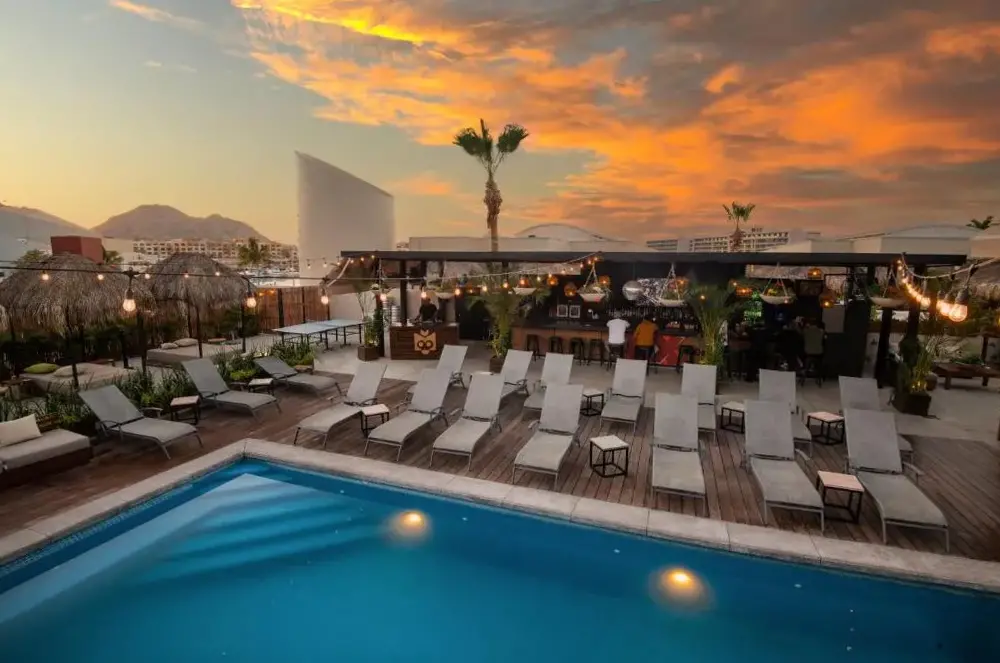 Mayan Monkey Los Cabos - Social Hotel se encuentra situado en 32 Boulevard Paseo de la Marina Plaza Gali 2do Piso, 23450 Cabo San Lucas, México. Este establecimiento ofrece una amplia gama de instalaciones incluyendo piscina al aire libre, restaurante, bar, WiFi gratuito, habitaciones no fumadoras, limpieza diaria y espacios adaptados para invitados con discapacidad. La ubicación estratégica permite acceder fácilmente a múltiples puntos interesantes de la zona, tales como Solmar Beach a solo 350 metros, Playa Pedregal a 1.2 km y Aeropuerto Internacional de Los Cabos a 34 km. Los comentarios destacan su excelente posición cercana a atracciones turísticas y al puerto, así como su calidad en servicios como el desayuno y la atención recibida por parte del personal.